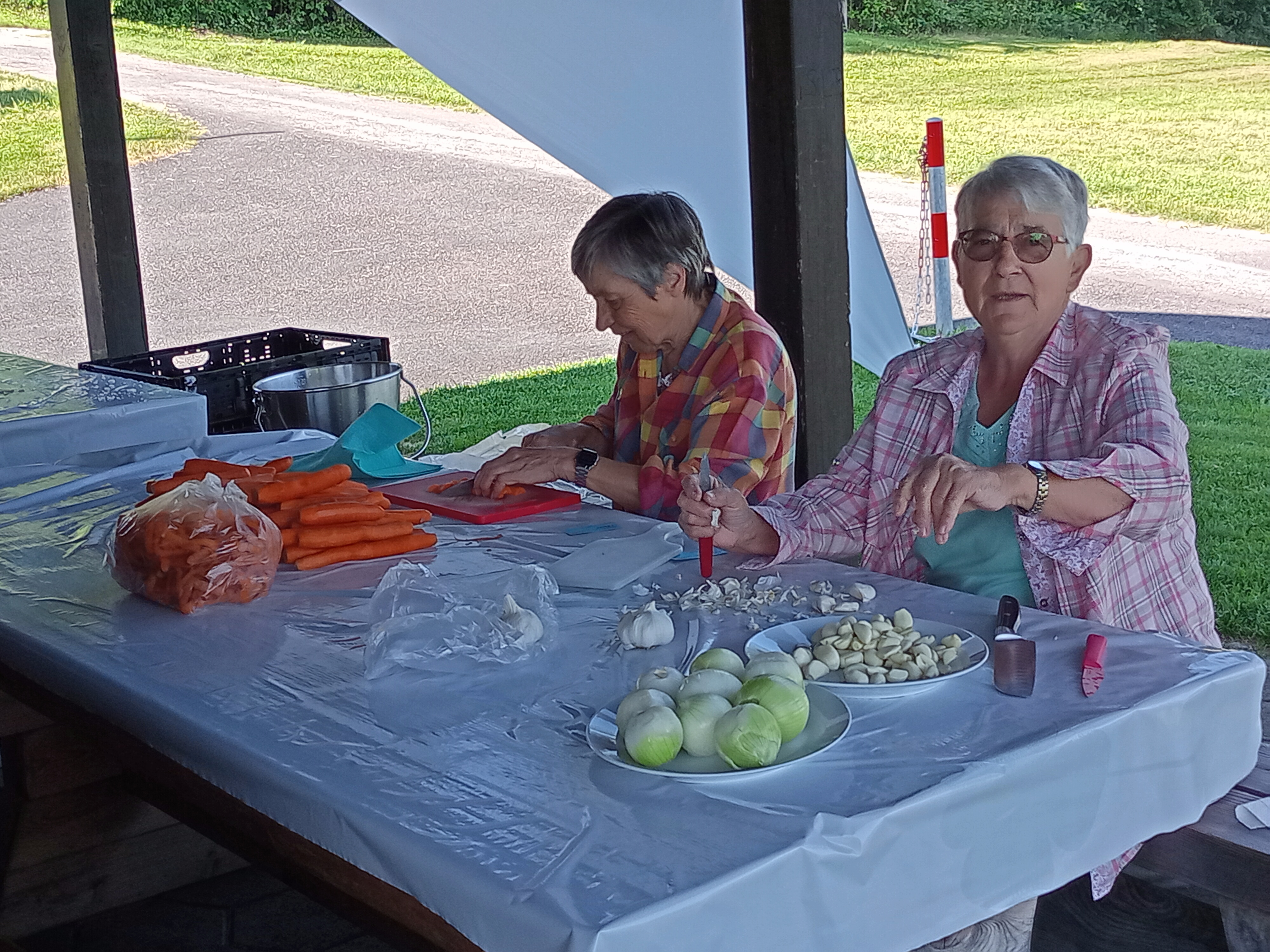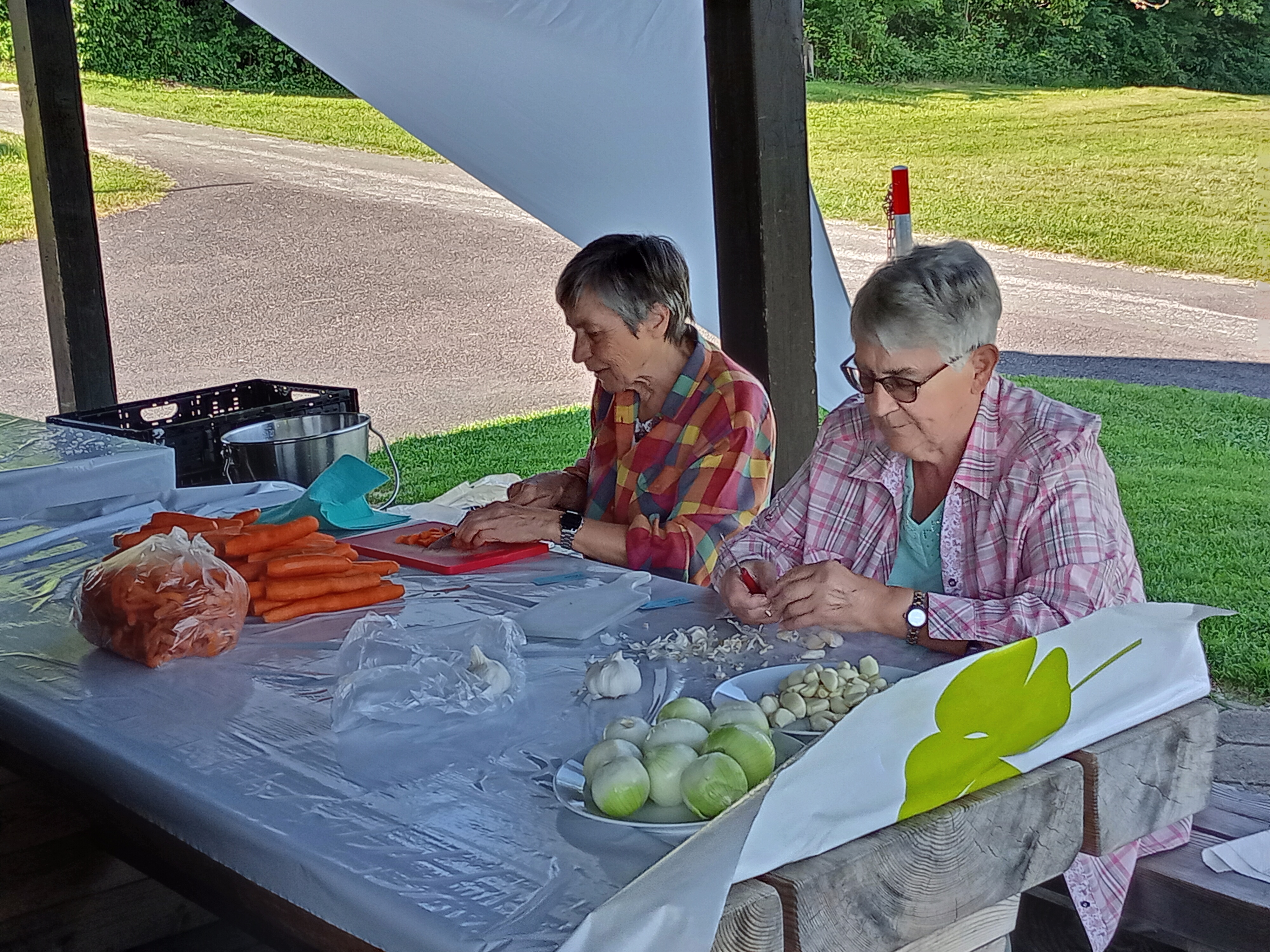 Die freiwilligen Helferinnen aus Fehren und Breitenbach kümmern sich ab 8 Uhr darum. Es wird gerüstet und geschnippelt wie verrückt.