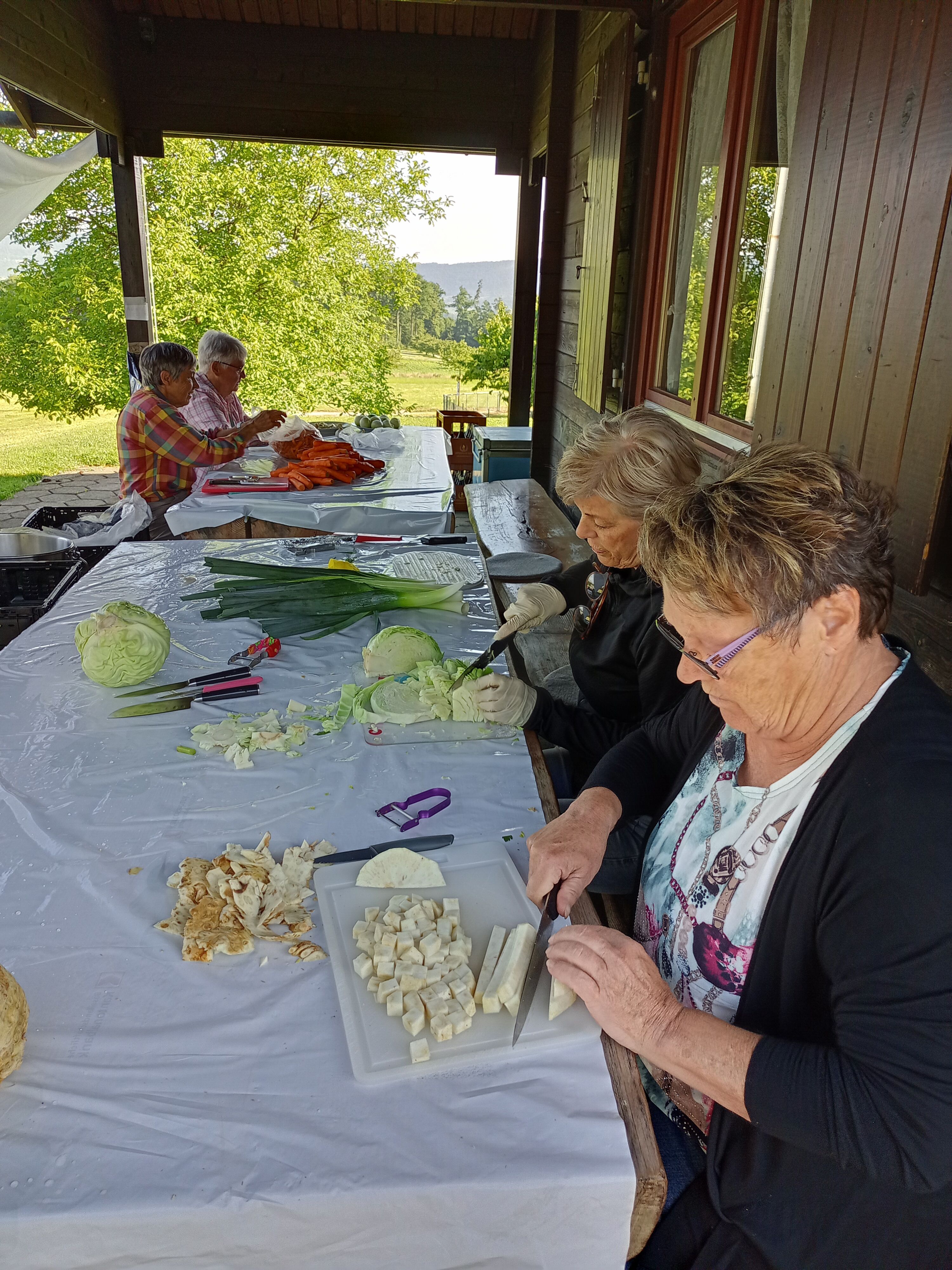Die freiwilligen Helferinnen aus Fehren und Breitenbach kümmern sich ab 8 Uhr darum. Es wird gerüstet und geschnippelt wie verrückt.