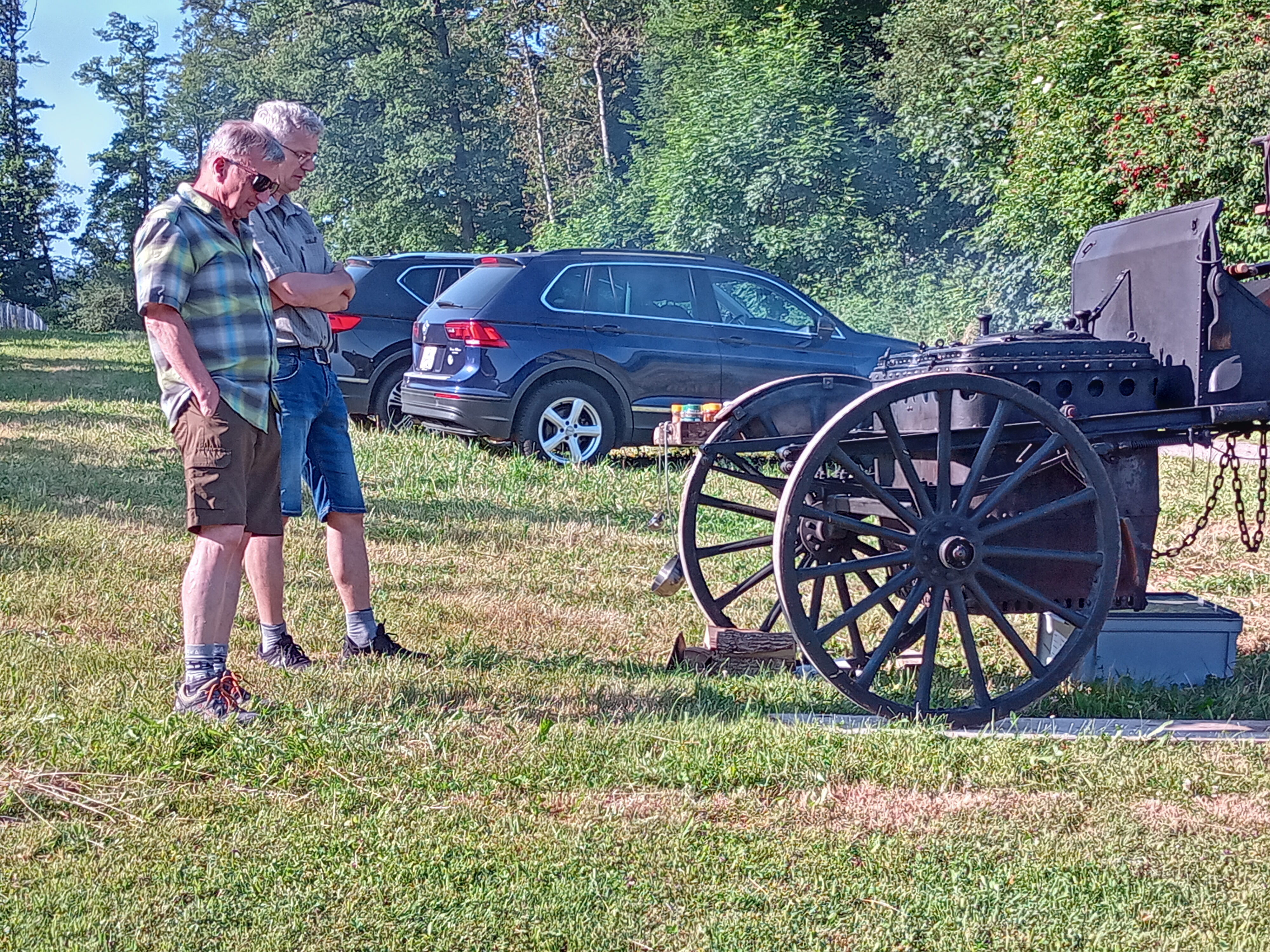 Um 9 Uhr treffen die restlichen Männer ein um die Zelte, Tische, Bänke, Altar, etc. aufzustellen. Die Sonne brennt jetzt schon und es muss für genügend Schattenplatz gesorgt werden. Die Allmendhütte ist voller Leben. Hier wird was gemacht und da wird was aufgestellt.